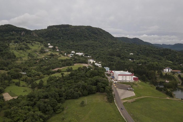Consiste em um pouco de cada uma dessas coisas. É também uma espécie de aparição, uma vasta coleção de prédios aterrissados no pampa, em uma zona de propriedades rurais e cidadezinhas de colonização italiana, como uma miragem no deserto.